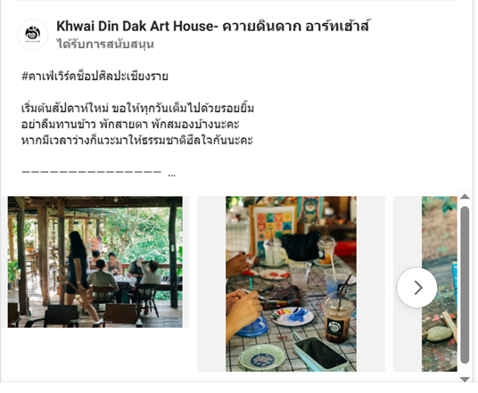Ads นี้ มี hashtag ขึ้นต้นมาโชว์จุดเด่นของร้านได้ดี เขียน caption สไตล์อบอุ่น เหมาะสำหรับคนไปเที่ยว/พักผ่อน ลงรูปภาพบรรยากาศร้านให้ดูหลากหลาย น่าเข้า