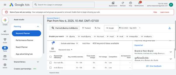 • สรุป Keyword ที่จะเลือกใช้